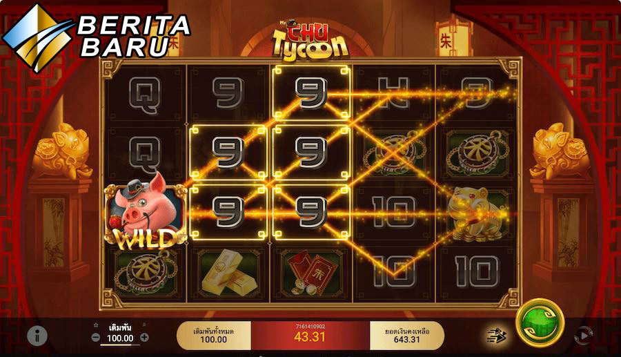 Ikuti tur ke aula dan kamar yang indah dari mesin slot Mr Chu Tycoon yang penuh dengan perabotan dan kekayaan mewah. Setiap kamar memiliki banyak harta untuk dijelajahi! Jika Anda melangkah ke foyer untuk bertemu dengan Mr. Chu, ada foto emas berkilauan yang dipajang di ruangan bertema oriental. Patung-patung berwarna emas dirancang untuk menghormati kesuksesan bisnis Mr Chu yang kaya.